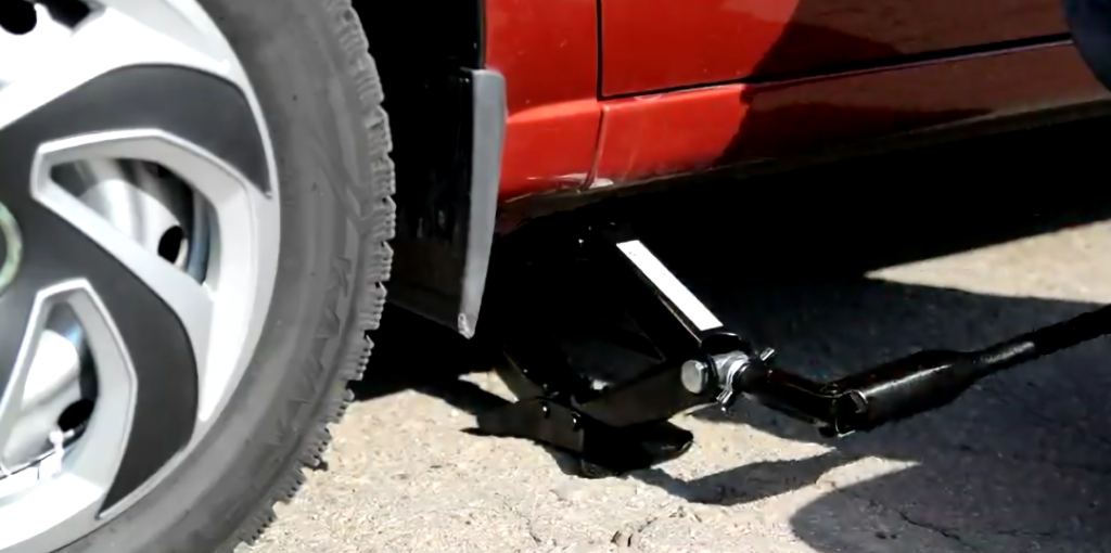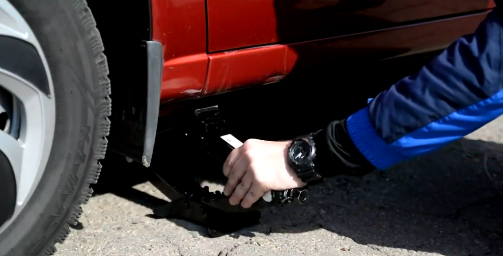 • به آرامی و با احتیاط شروع به چرخاندن جک کنید تا خودرو به تدریج بالا برود.